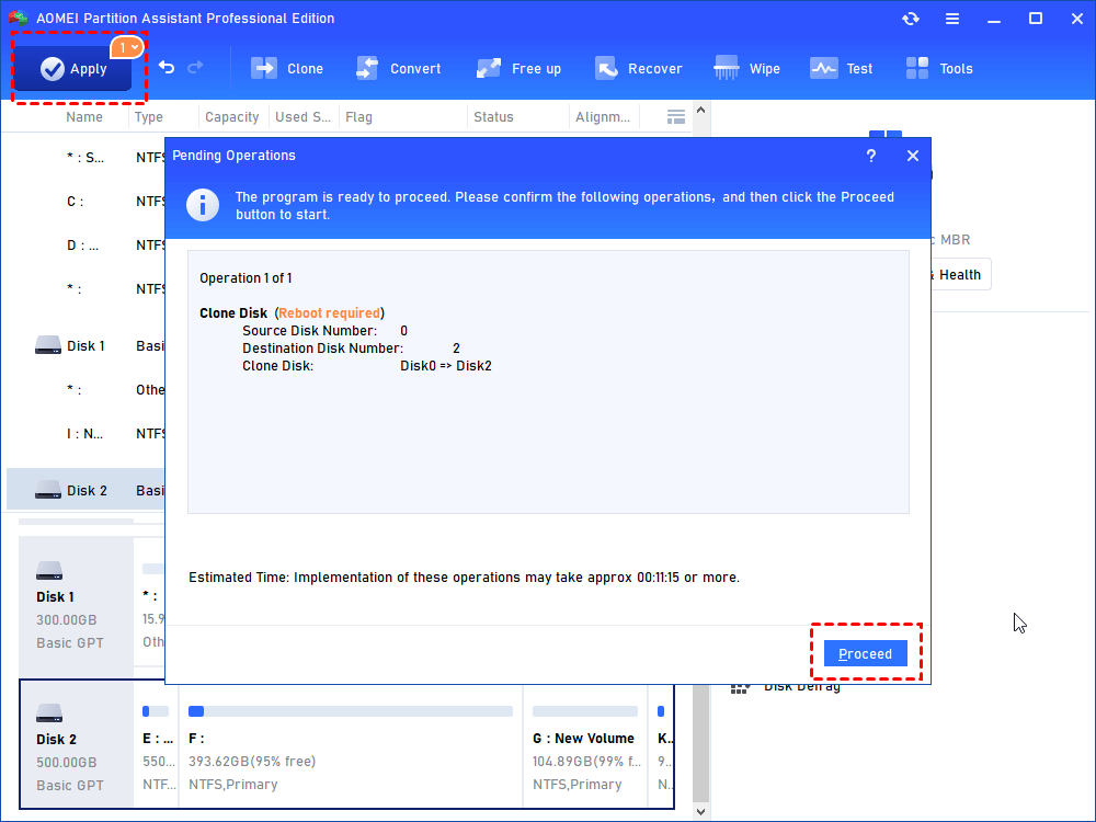 Etapa 7.Escolher "Prosseguir" e "Aplicar”Para executar as operações.