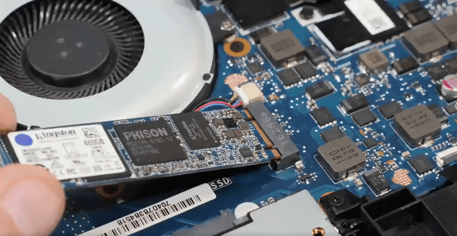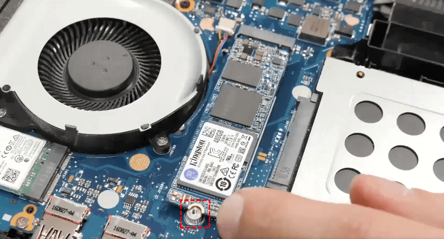 Etapa 1.Para usuários de laptop, é necessário remover a tampa traseira com uma chave de fenda. Em seguida, insira o SSD no slot e certifique-se de que esteja apertado o suficiente para conectar-se à interface da placa-mãe.