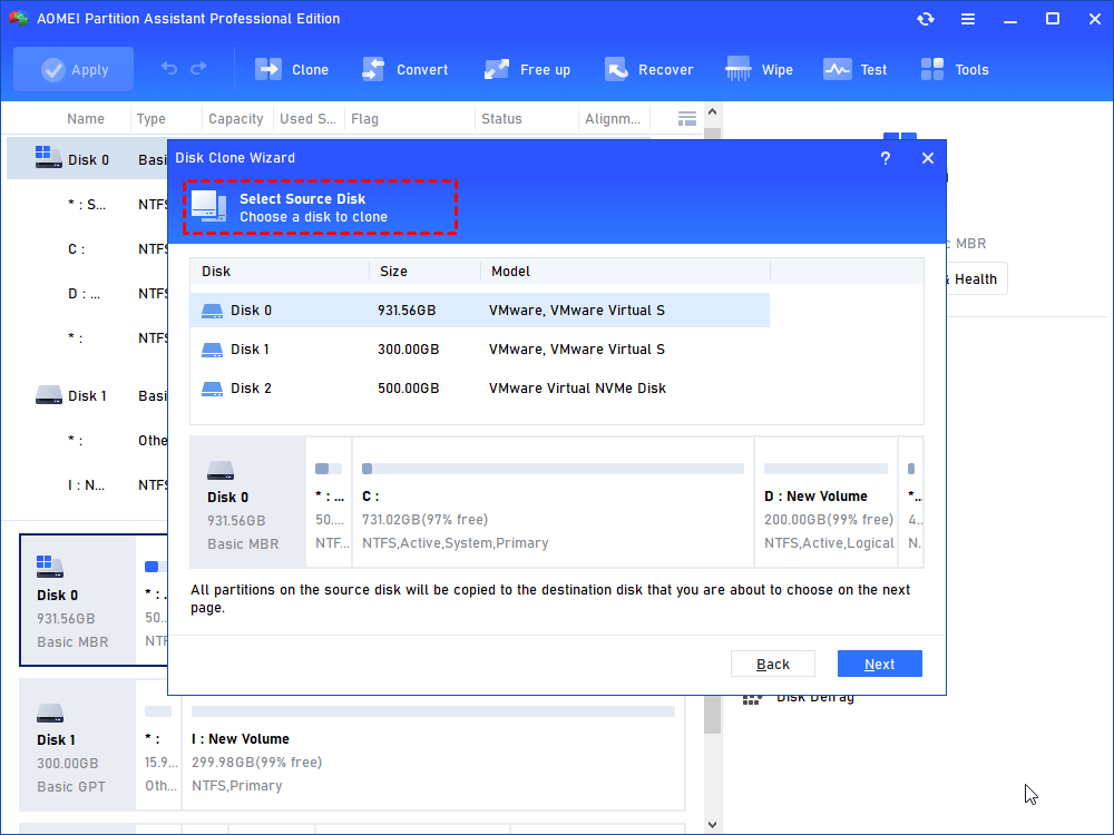 Etapa 3.Selecione o disco do sistema como disco de origem.