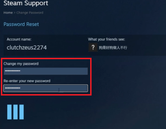 Neste momento, você precisará inserir a nova senha desejada. Esforce-se para obter uma combinação complexa que inclua letras maiúsculas e minúsculas, números e símbolos especiais como ‘@’ ou ‘#’. A plataforma Steam fornece um medidor de força da senha para avaliar o nível de segurança da sua nova senha.