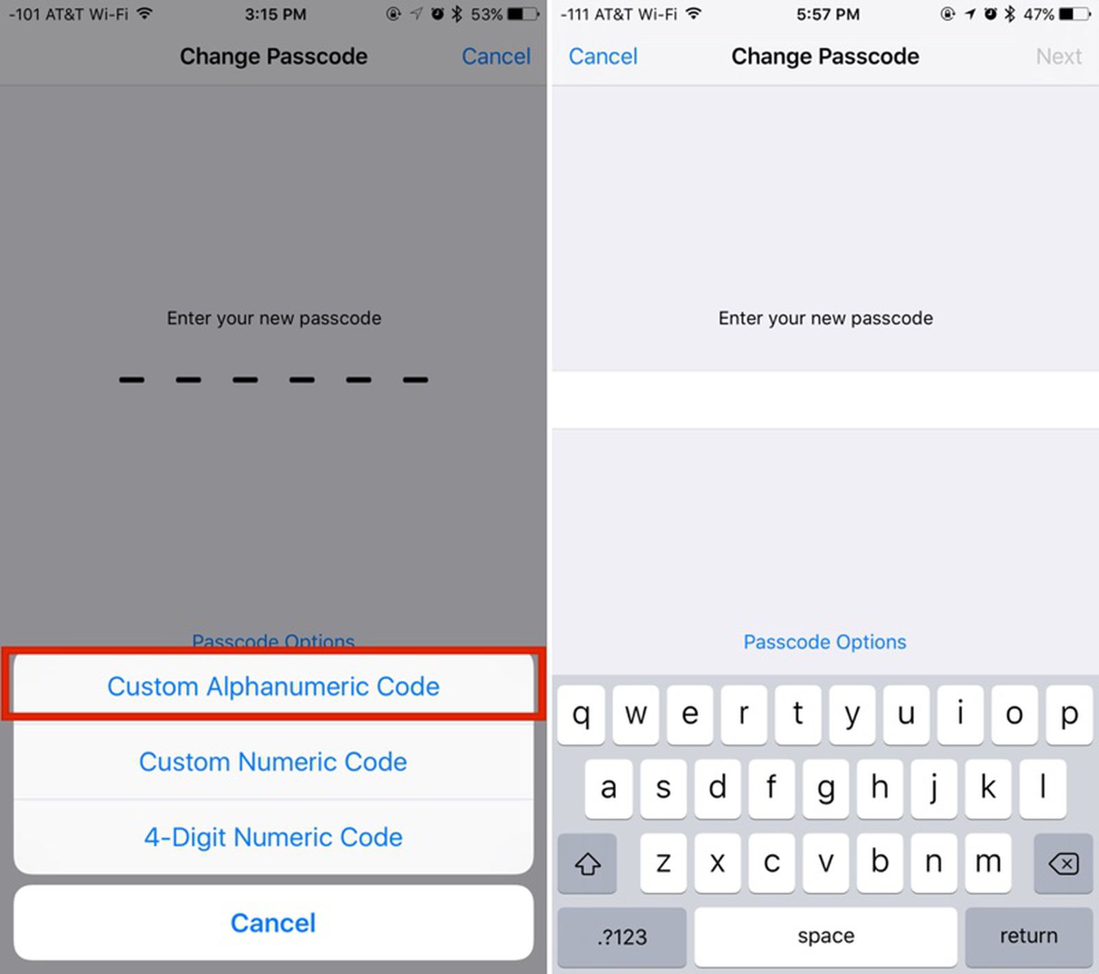 Por muito tempo, as senhas eram códigos numéricos de quatro dígitos por padrão, mas com o iOS 9, a Apple começou a usar uma senha de seis dígitos como opção padrão. As senhas de seis dígitos oferecem 1 milhão de combinações possíveis em vez de 10.000, tornando a senha mais difícil de decifrar.