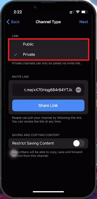Posso escolher entre um canal Telegram público e privado?Sim, durante o processo de configuração, você terá a opção de tornar seu canal público, que pode ser pesquisado e acessível a todos, ou privado, onde o acesso é limitado às pessoas que você convida por meio de um link direto.