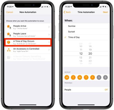 - Escolha um horário e dia da semana nas opções na tela. Você também pode tocarPessoaspara fazer com que a automação ocorra em horários específicos quando alguém estiver em casa.