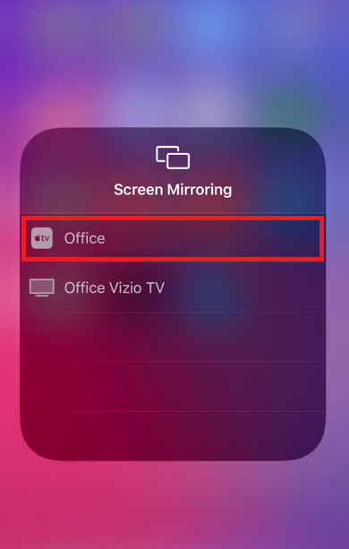 (6)Selecione sua TV compatível com Apple ou AirPlayna lista de dispositivos disponíveis.