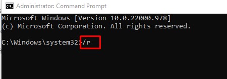 Etapa 4: /r –significa reiniciar após o desligamento