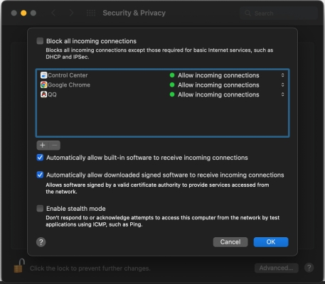 O firewall do seu Mac ou software de segurança de terceiros pode bloquear conexões de entrada, afetando a descoberta do AirDrop ou a recepção de arquivos.