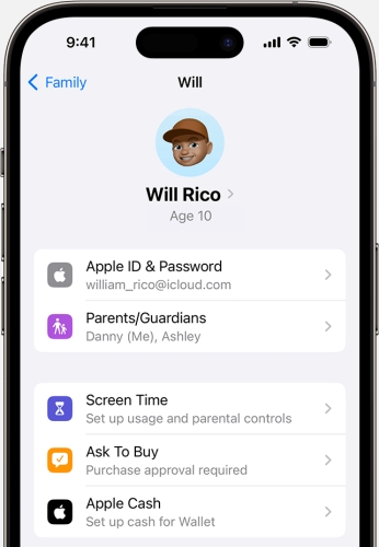 É importante preencher o cartão de contato do seu filho no dispositivo, incluindo o nome completo e o endereço de e-mail ou número de telefone do ID Apple. Em seguida, as notificações do Ask to Buy podem ser enviadas para o dispositivo dos pais. Isso significa que o dispositivo dos pais pode receber essas notificações.