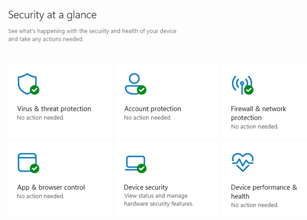 - O aplicativo Segurança do Windows será iniciado. Clique na caixa Proteção contra vírus e ameaças.