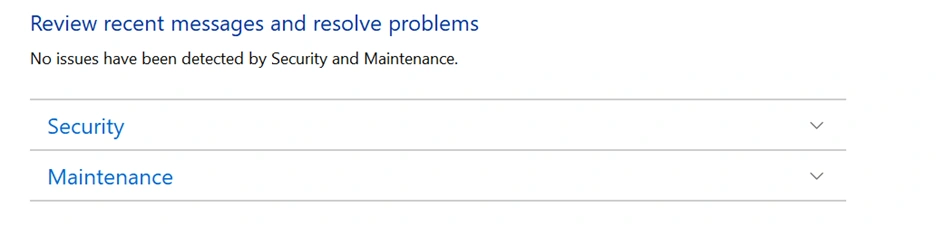 - Em seguida, clique em Segurança e Manutenção para ver mais opções.