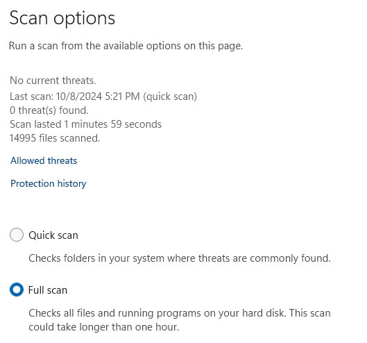 - Em seguida, clique em Opções de verificação e selecione Verificação completa.