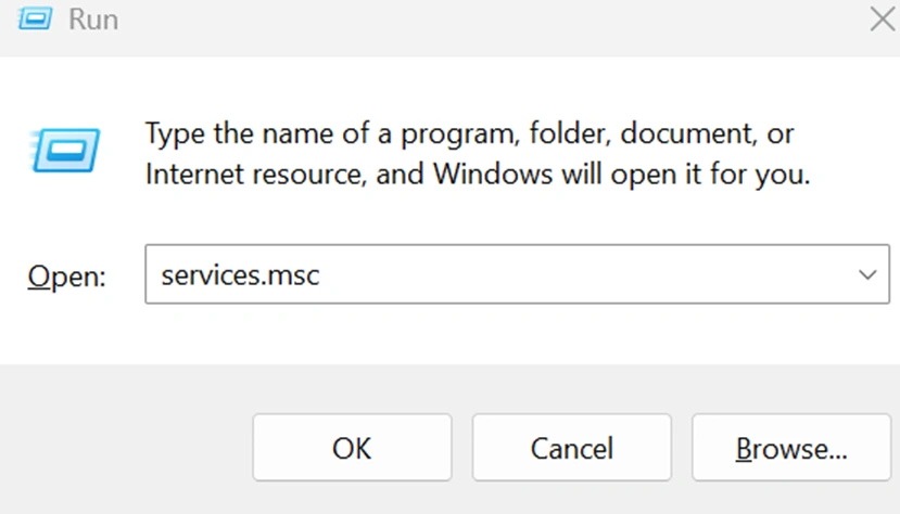 - Pressione Windows + R, digite services.msc e pressione Enter.