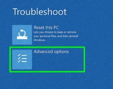 5. Na tela Solução de problemas, clique em Opções avançadas.