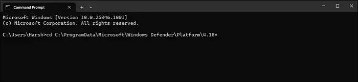 cd C:ProgramDataMicrosoftWindows DefenderPlatform4.18*
