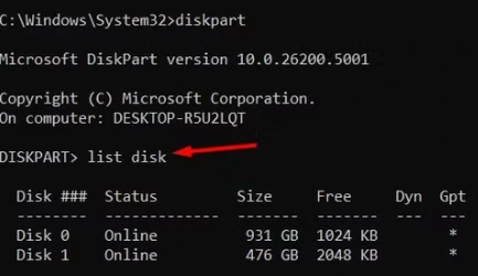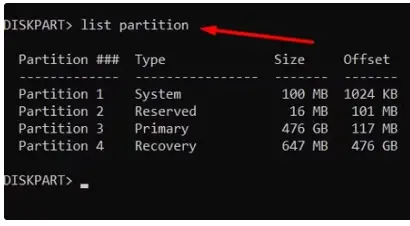 2. Você verá uma lista de todas as unidades do sistema. Identifique o disco onde o Windows está instalado e selecione-o executando o seguinte comando: