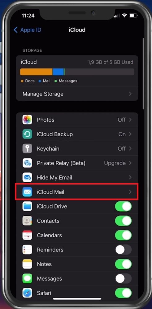Toque emCorreio iCloude certifique-se de desativar esta opção. Caso seus e-mails estejam sendo recebidos agora, o problema está relacionado aos dados de login do iCloud ou ao armazenamento do iCloud.