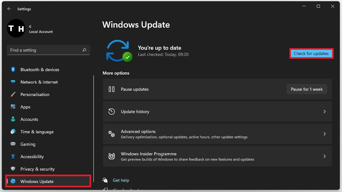 ProcurarAtualizarpara abrir o seuVerifique se há atualizaçõesjanela de configurações do sistema. Aqui, clique emVerifique se há atualizaçõese depois de baixar a atualização mais recente do sistema operacional, reinicie o PC.
