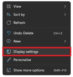 Clique com o botão direito na área de trabalho e selecioneConfigurações de exibição.