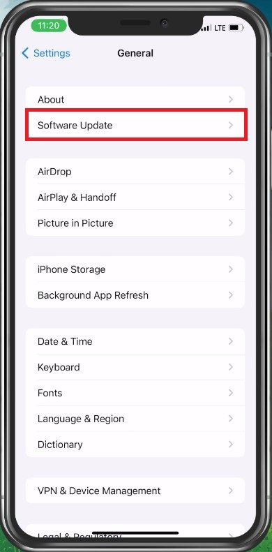Por último, nas configurações do seu iPhone, navegue até oEm geralseção. Aqui, toque emAtualização de software. Certifique-se de baixar qualquer atualização que possa estar disponível para você antes de reiniciar o dispositivo.