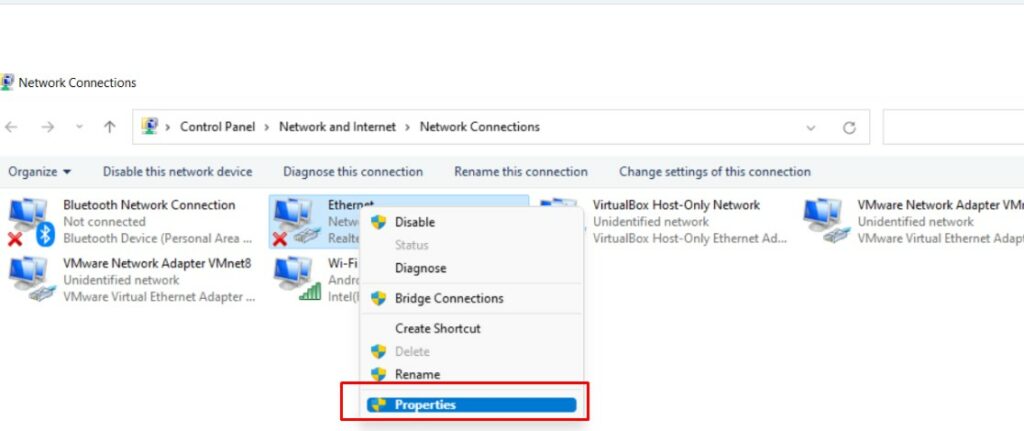 Etapa 4:SelecioneEthernete pressione “Propriedades”