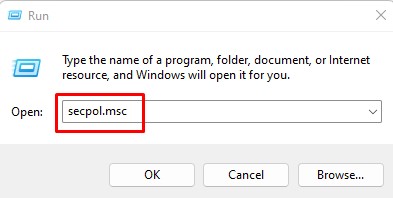 Etapa 2:Digite “Secpol.msc”, depois selecione “OK”