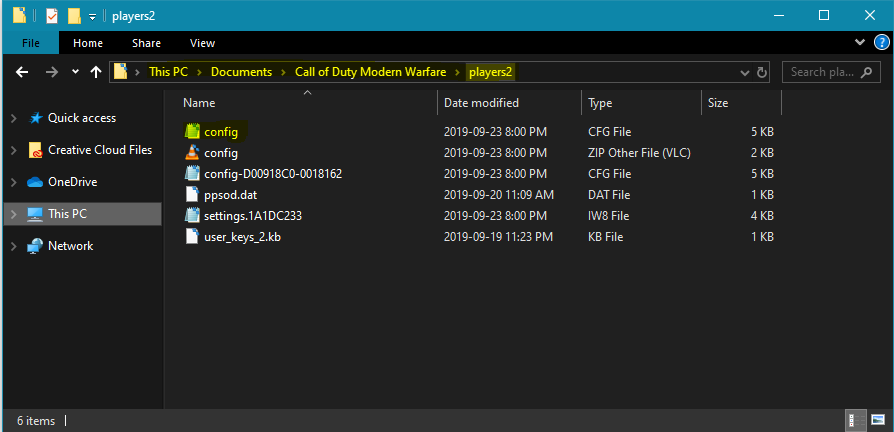 Abra seu explorador de arquivos e navegue até: Este PC > Documentos > Call of Duty Modern Warfare > players2