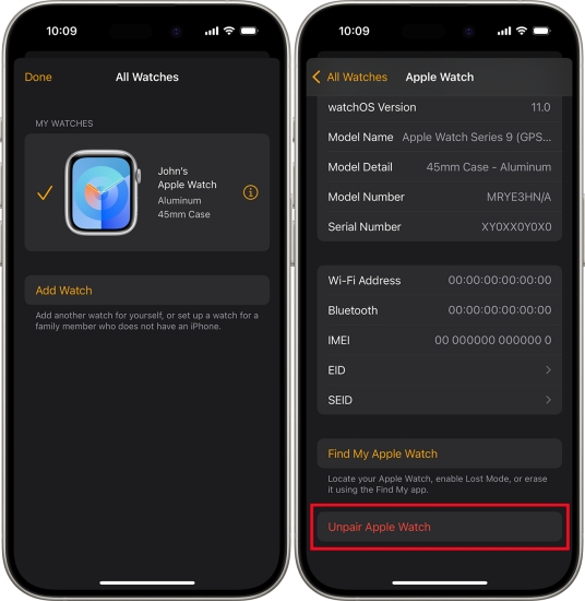 Método 1. Livre-se do Apple Watch bloqueado ao proprietário por meio do aplicativo Watch