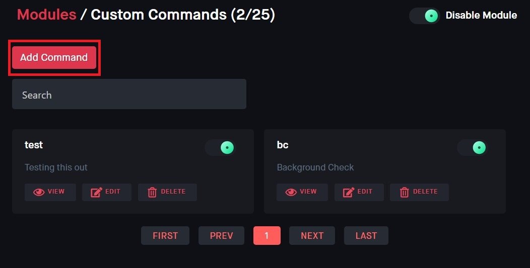 Dyno > Módulos > Comandos Personalizados