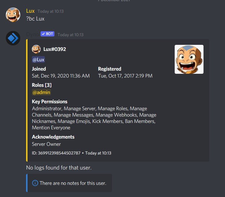 Use Dyno Bot para executar uma verificação de antecedentes