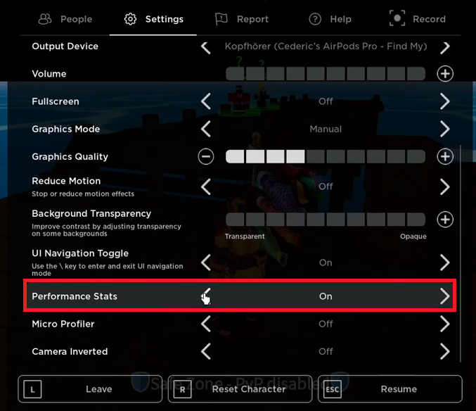 Posso personalizar quais estatísticas de desempenho são exibidas no Roblox?A sobreposição padrão fornece estatísticas específicas, como FPS, uso de memória e tempo de resposta da CPU. A personalização dessas estatísticas não é suportada atualmente.
