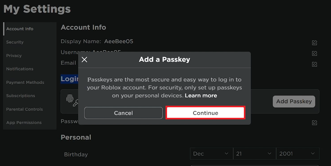 Configurando sua chave de acesso Roblox para segurança aprimorada da conta