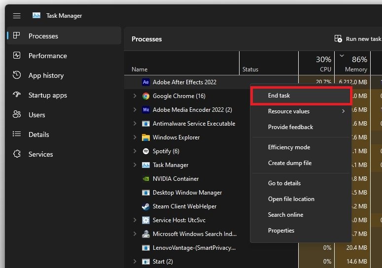 Depois de aplicar suas alterações, você pode fechar o jogo e abrir seuGerenciador de tarefas. Para reduzir a utilização da CPU de outros programas, sugiro que você interrompa a execução de alguns programas em segundo plano, dos quais você não precisa ao jogar. Mas certifique-se de encerrar a execução apenas de programas que você sabe que não danificarão seu sistema operacional.