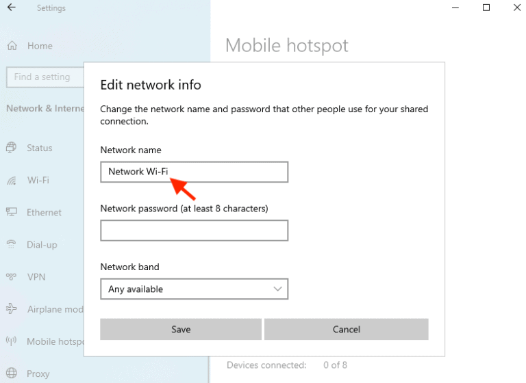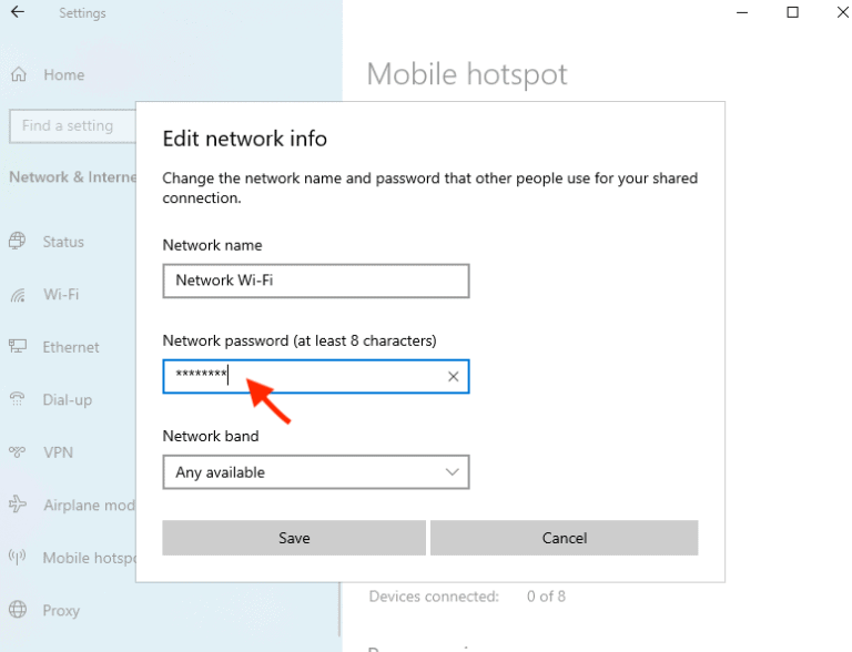 - Crie uma senha para o seu hotspot no “Senha da rede" campo.