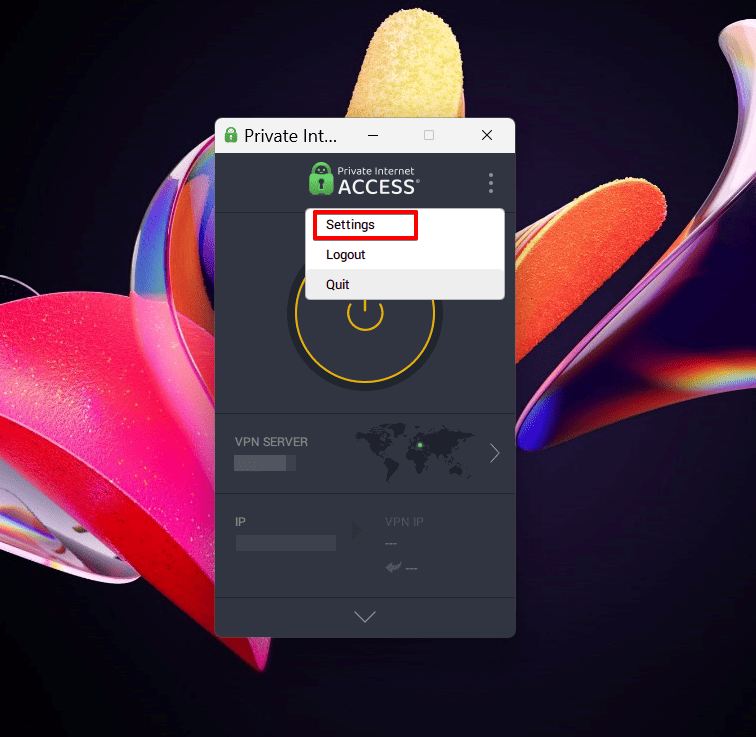 Outra maneira de reduzir o ping do Apex Legends ao usar o Private Internet Access é modificar as configurações do aplicativo PIA. Siga estas etapas: