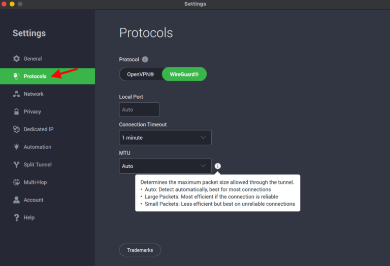 Para a melhor experiência,Eu recomendo o protocolo WireGuard porque oferece melhor velocidade que OpenVPN, especialmente porque Apex Legends é um jogo de ritmo acelerado.