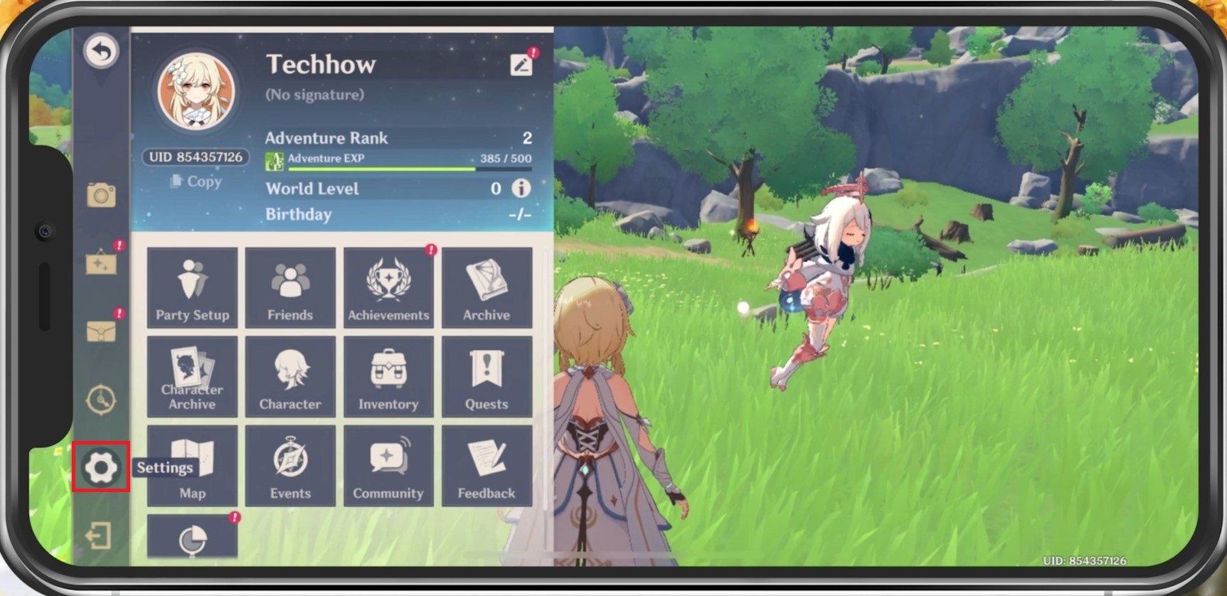 Resgatar códigos de impacto Genshin nas configurações