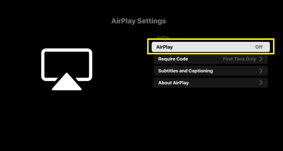 5. Em seguida, ligue oAirPlayrecurso clicando em AirPlay.