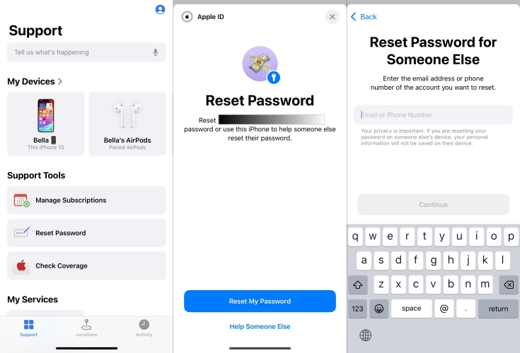 Método 2. Restaurar ID Apple bloqueado por meio do aplicativo de suporte da Apple