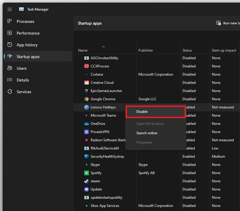 NoComeceguia, você pode impedir que programas sejam iniciados na inicialização do sistema. Você pode então fechar o V Rising e seuGerenciador de tarefas.