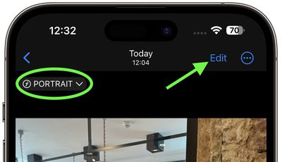 - VFotografieťuknite na ľubovoľnú fotografiu nasnímanú v režime fotografie a zobrazte ju na celej obrazovke. Ak sú pre fotografiu dostupné informácie o hĺbke, aPortréttlačidlo sa zobrazí v ľavom hornom rohu.