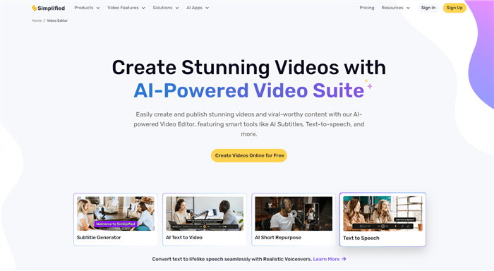 Sist men inte minst är Simplified en revolutionerande videoförbättringsplattform. Den använder AI för att förbättra videokvaliteten. Detta onlineverktyg innebär att inga nedladdningar eller installationer behövs.