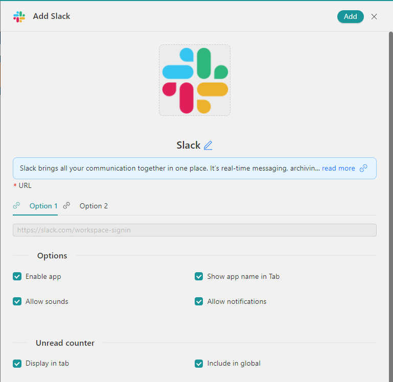 Klicka på "+ Lägg till" och voilà! Appen kommer att läggas till din Rambox-arbetsyta.