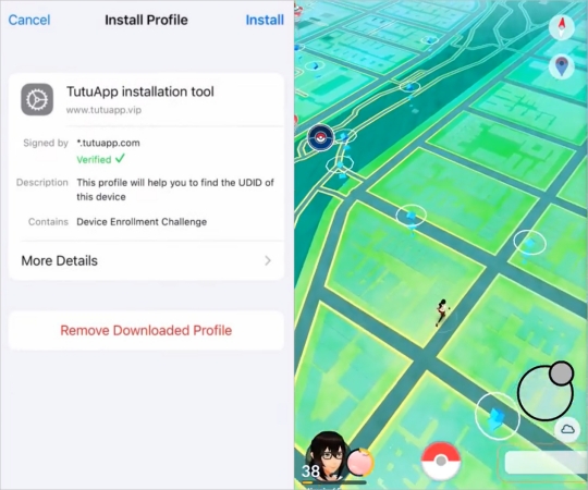 TutuApp är en appbutik från tredje part som ibland distribuerar tweakade Pokémon GO-byggen med en inbyggd joystick för snabb installation på iPhone. Det undviker datorer med hjälp av över-the-air-signering, även om certifikat kan återkallas. Många användare väljer det för bekvämlighet, snabba uppdateringar och enkel tillgång till joystickfunktioner med minimal installation och stilleståndstid.