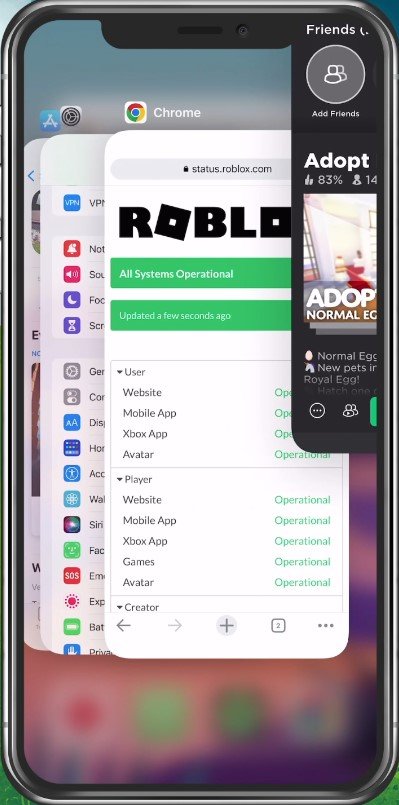 Se först till att du inte spelar Adopt Me på en annan enhet, till exempel en PC eller annan mobil enhet. Avsluta sedan programmet helt och öppna dina enhetsinställningar.