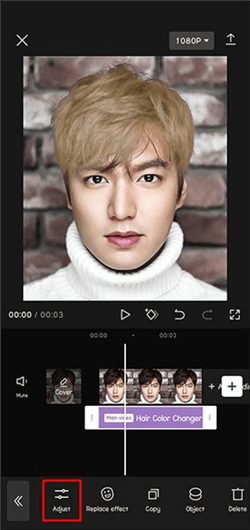 Steg 4.Använd "Justera” alternativet för att anpassa hårfärgen, strukturen och andra detaljer.