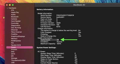 Kontrollerar Mac-battericykelräkning