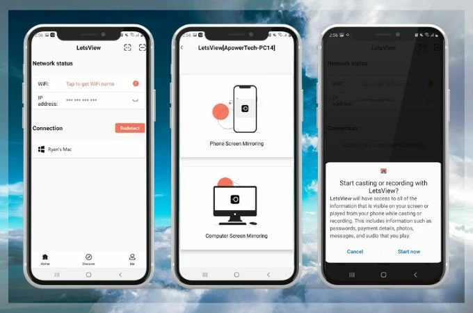 Denna välkända app för skärmspegling för din iPhone är känd för sin gratistjänst. LetsView är en intelligent app för flera skärmar och plattformar. Består av kraftfulla tekniska funktioner som smart skärmspegling inkluderar. Med den funktionen kan du ha en trådlös iPhone-skärm till ett större utbud som på din PC och TV-skärm. Från ditt hem till ditt kontor kommer LetsView definitivt att visa ett bra visuellt resultat.