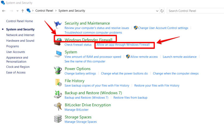 - Gå till "Windows Defender brandvägg"," klicka sedan på "Tillåt en app via Windows-brandväggen.”