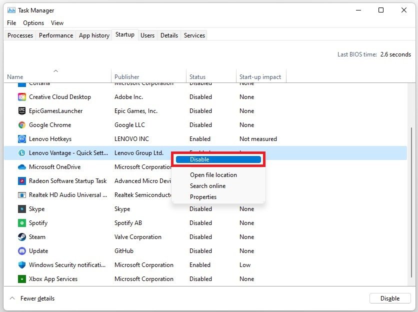 I denUppstartfliken kan du förhindra att program startar vid systemstart. Du kan nu stänga spelet och avsluta dinTask Manager.