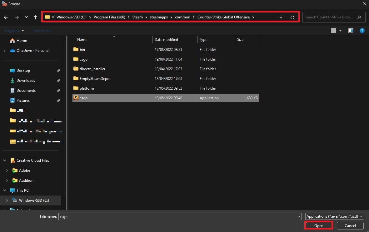 I din filutforskare, navigera till enheten där du installerade Counter-Strike > Programfiler > Steam > steamapps > common > Counter-Strike Global Offensive. Väljacsgooch klicka påÖppna. Du kan sedan fortsätta att starta CSGO utan att fåVAC kunde inte verifiera din spelsessionfel.