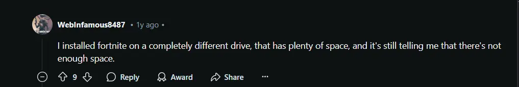 3. Installera på en annan enhet: Många användare står inför felet trots att de har tillräckligt med utrymme på sin dator, och problemet ligger i installationsvägen. Fortnite är ett av de spel som kräver att det installeras på C som standard. Detta betyder hur mycket utrymme du än har på dina andra enheter; du kan få problem om din huvudenhet har otillräckliga problem.
